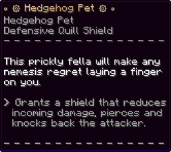 The Hedgehog will grant you a particle shield which can absorb a percentage of damage dealt to the player. It will break immediately, deal the damage dealt to the player back to the attacker, and regenerate the shield after 10 seconds.