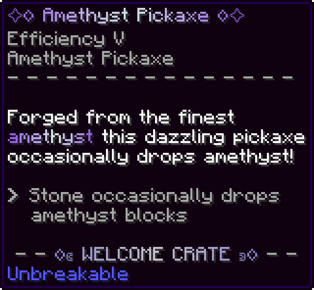 | 07:33, 9 January 2026 | Crates Welcome Text Amethyst Pickaxe.png (file) | 11 KB | Zumbuh (talk | contribs) | 1 | ||