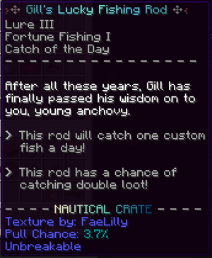 |[[File: | |[[File:Gill's Lucky Fishing Rod Lore.png|thumb]] | ||